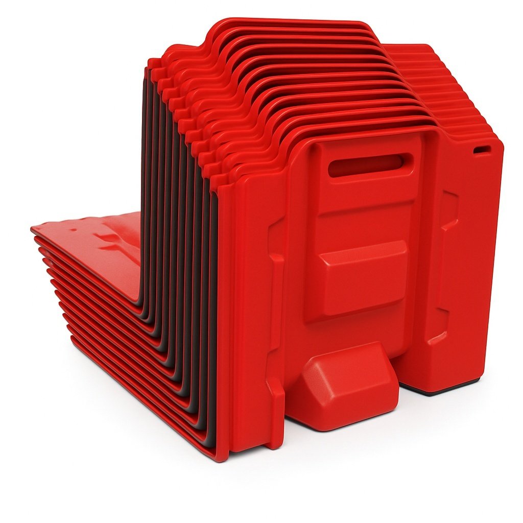 Bariery WaterShield zostały zaprojektowane z myślą o maksymalnej mobilności i wygodzie użytkowania. Dzięki lekkiej konstrukcji i kompaktowym wymiarom po złożeniu, można je łatwo transportować oraz przechowywać nawet w niewielkich przestrzeniach. Modułowe elementy umożliwiają szybkie układanie w stosy, co oszczędza miejsce i usprawnia logistykę. Niezależnie od tego, gdzie wystąpi zagrożenie, bariery można błyskawicznie przemieścić i zastosować tam, gdzie są najbardziej potrzebne.